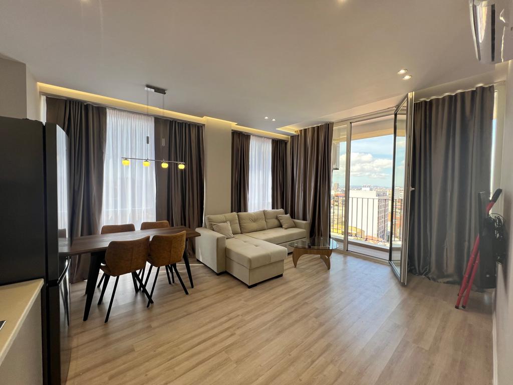 Jepet Apartament me qera, Parking i perfshire, me rifinitura te shkelqyera. Apartamenti ndodhet ne katin e tete te nje objekti te ri, ne nje zone teper te qete, rreth 200m ne vije ajrore nga Gjimnazi Partizani. Objekti eshte i pajisur me dy ashensore. Posti i parkimit ndodhet ne katin -2.
